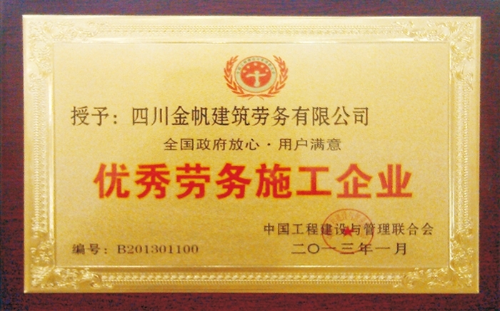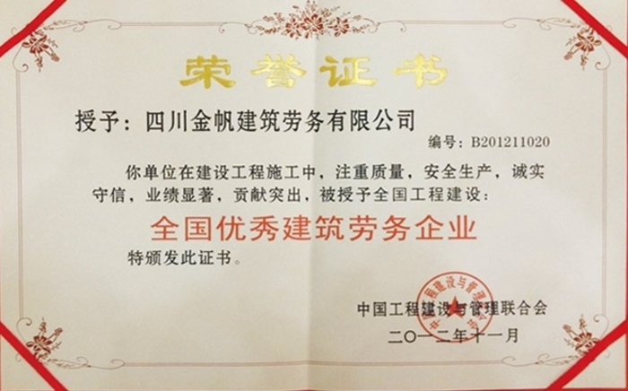 金帆全國優(yōu)秀建筑勞務企業(yè)