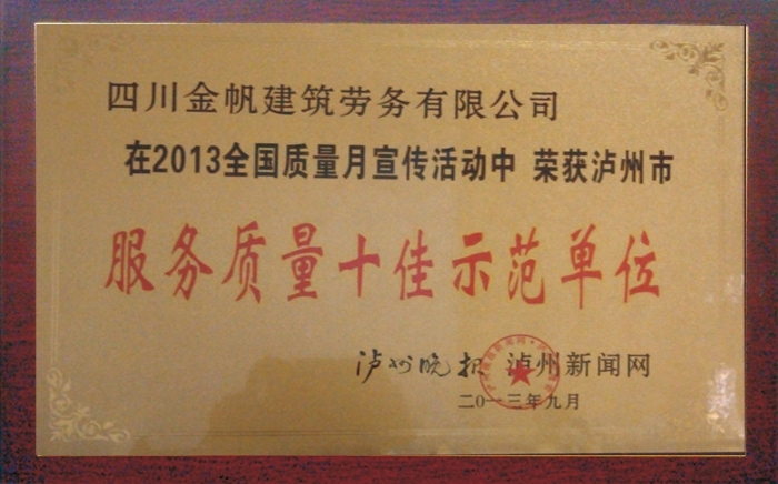 金帆服務質(zhì)量十佳示范單位