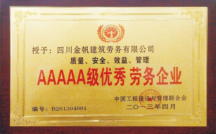 金帆五A級優(yōu)秀勞務企業(yè)